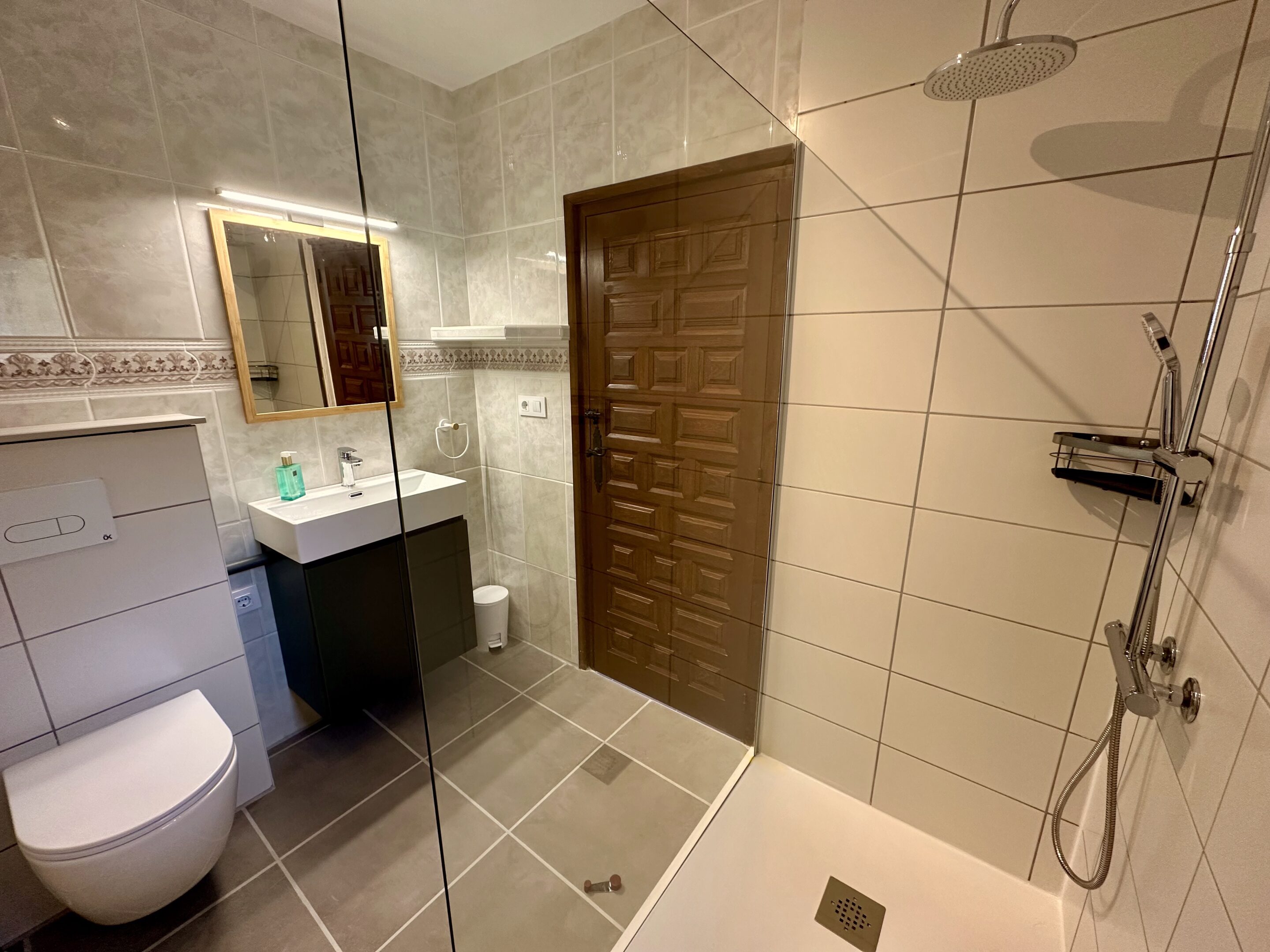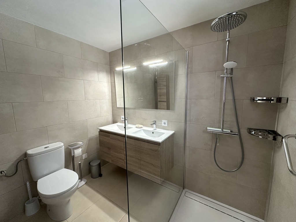 Moderne badkamer met inloopdouche (1 kamer is nog met douche in bad)