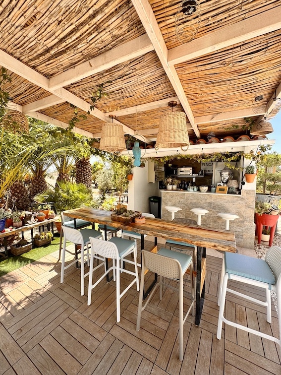 Rond het zwembad staan meerdere comfortabele ligbedden tot uw beschikking. Badlakens zijn inbegrepen. - Gratis Wi-Fi