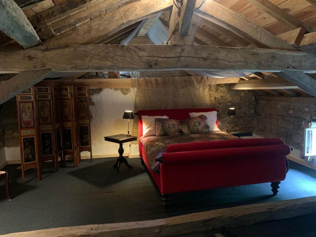 Kamer Arabella is een erg ruime woning op de 1e etage van de oude molenaarswoning. U heeft een mooi uitzicht op de rivier en er is een privé badkamer met inloopdouche aanwezig. Via een vaste trap in de zitkamer op de 1e etage komt u op een rustieke slaapzolder met een 2-persoonsbed van 160×200 cm. Er is een openslaand raam met hor en door de dikke muren blijft het binnen koel.